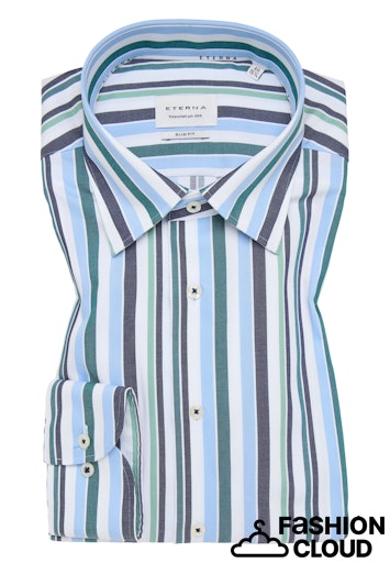 Leírás 1: kék-zöld csíkos, kent galléros, vasalás könnyített, hosszú ujjú ing
