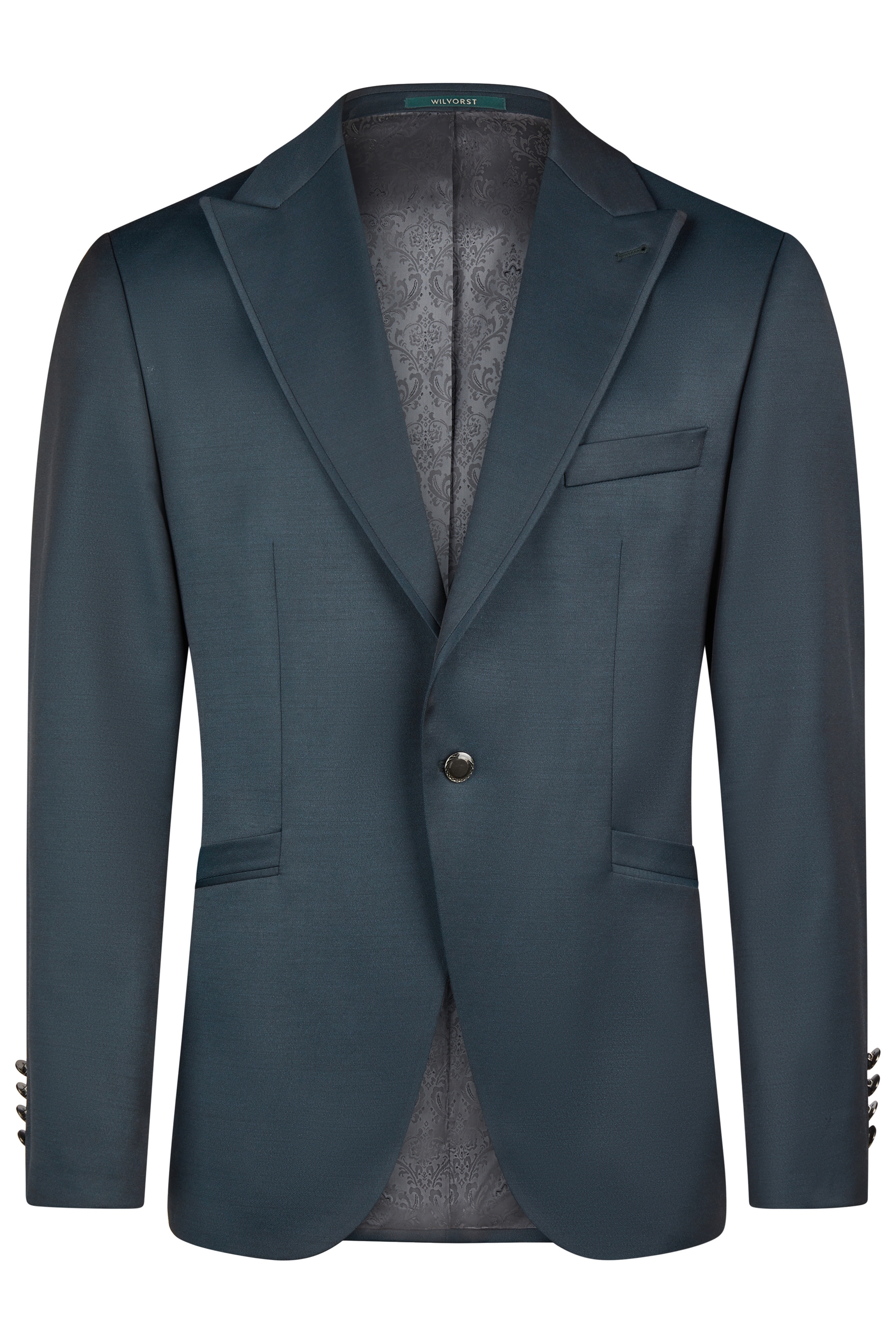 paszpólos zseb, paszpólos hegyes gallér, egygombos